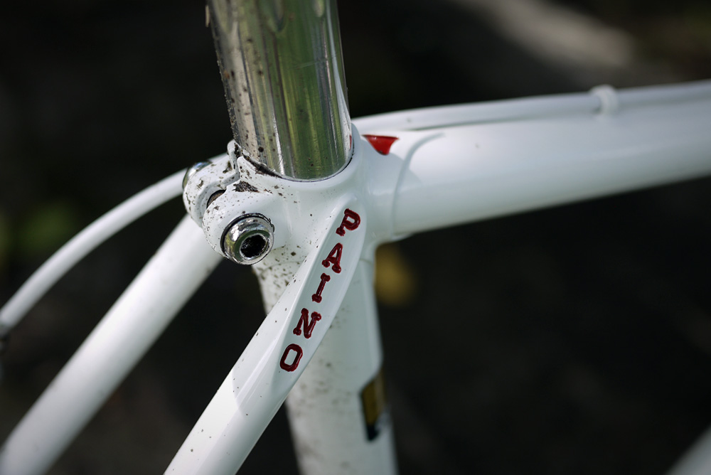 In the 80’s Frank Paino had a shop in Sydney (Miranda Cycles) and he built custom road bike frames. Gary Sutton (who is currently the NSW Institute of Sport’s head cycling coach) won a world championship on a Paino in the early 80’s and that gave Frank Paino the right to use the world cup colours on his frames.