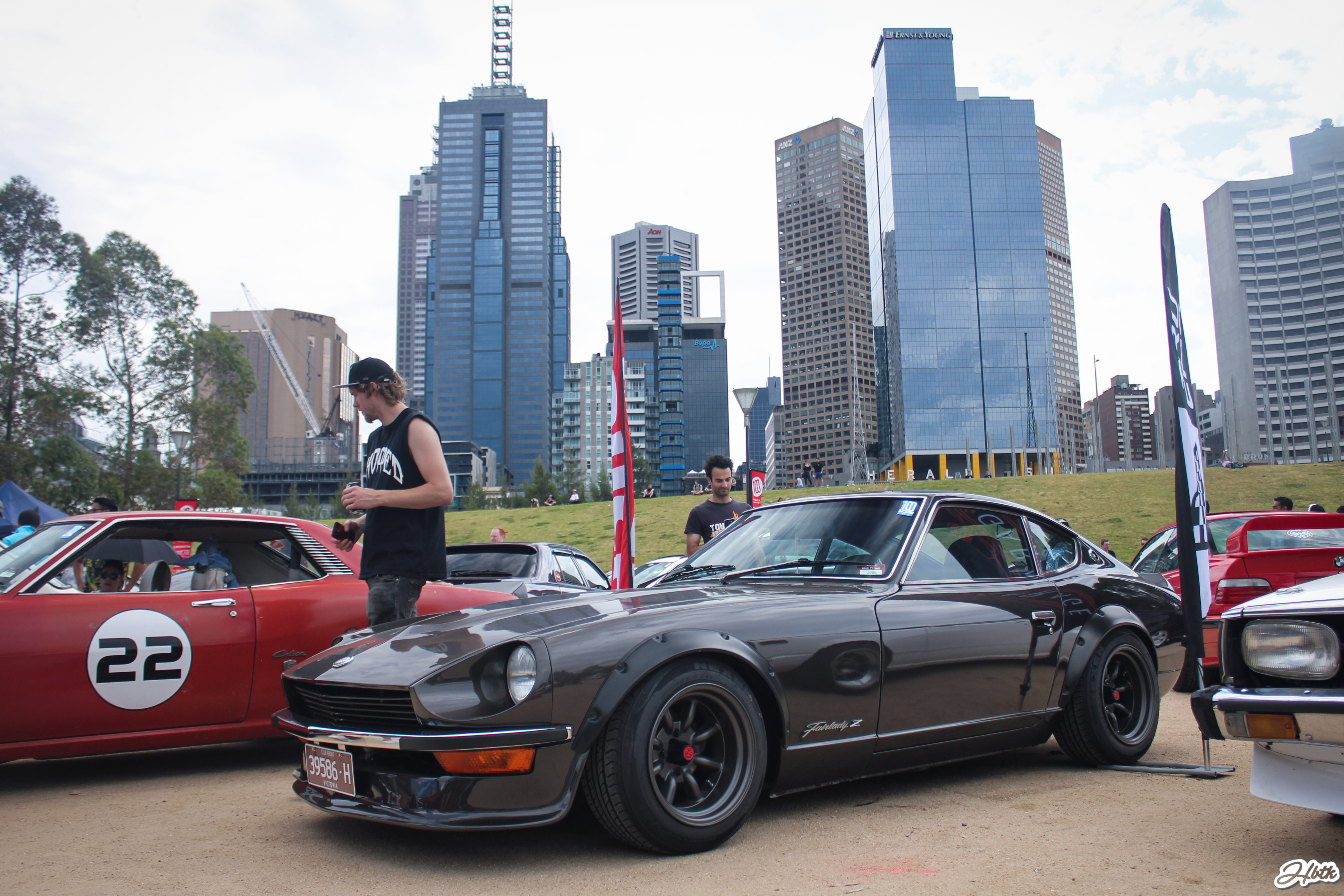 Chook’s Z33 is another eye-catcher. Everything about it demands attention. The hue, the Big Country Labs wing, and of course- the ride height! Had been seeing quite a lot of photos of the car at WTAC and was awesome to find him on the bank of the Yarra river.