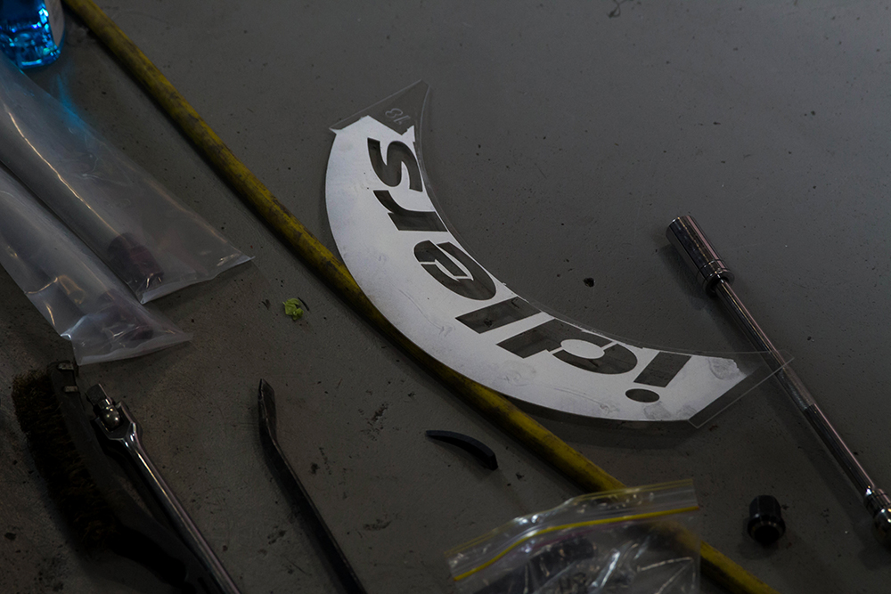 The famous ‘Idlers’ stencil which is used when spraying onto each tyres sidewall.