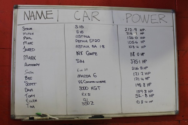 The event attracted a wide range of cars from Nissan S14s, S15s, Evos, Commodores, RX8s and even an NX Coupe. Some producing very nice engine notes. They even threw on a Mazda 121 which nobody believed would make over 50hp but then had the crowd cheering when it pulled 52.8hp! It was very entertaining.