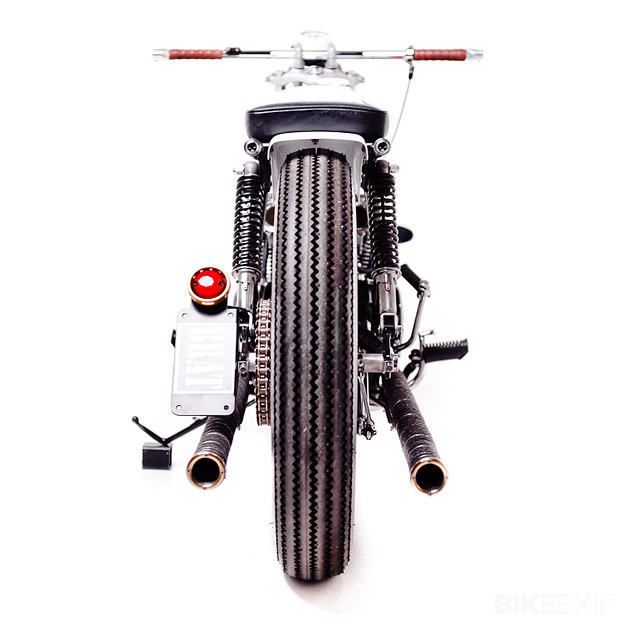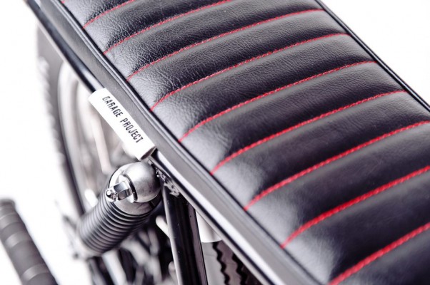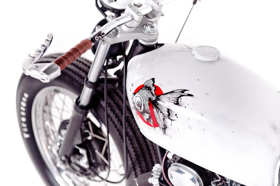 The Brat’s a hot 1972 Honda CB350 built by Perth based custom workshop Garage Project Motorcycles. We love the attention to detail, the tacky tachy and asymmetrical tank paint job featuring the artwork of Sydney based artist Nanami Cowdroy.