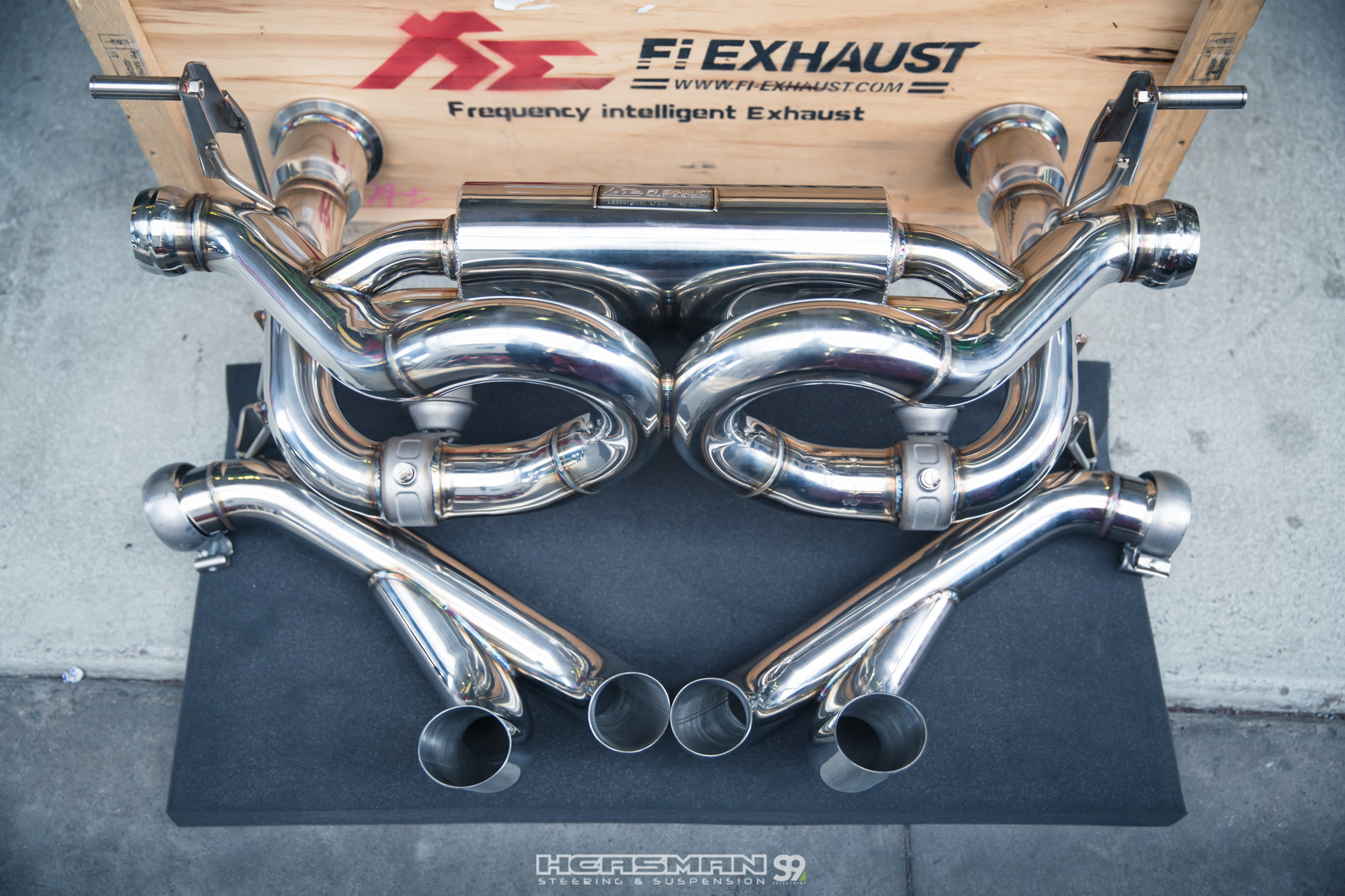 The guys at Heasman Steering had this brilliant green Lamborghini Huracan in for a little bit of work; straying slightly from the usual suspension and steering work that they do, this Huracan LP-610-4 was in to have a Frequency Intelligent Exhaust fitted. An exhaust swap may sound like a relatively straight forward task, but in this case it was quite a procedure removing everything to gain access to the factory system so it could be removed to make way for the FiE system (which is, as you might have guessed, a variable exhaust system).