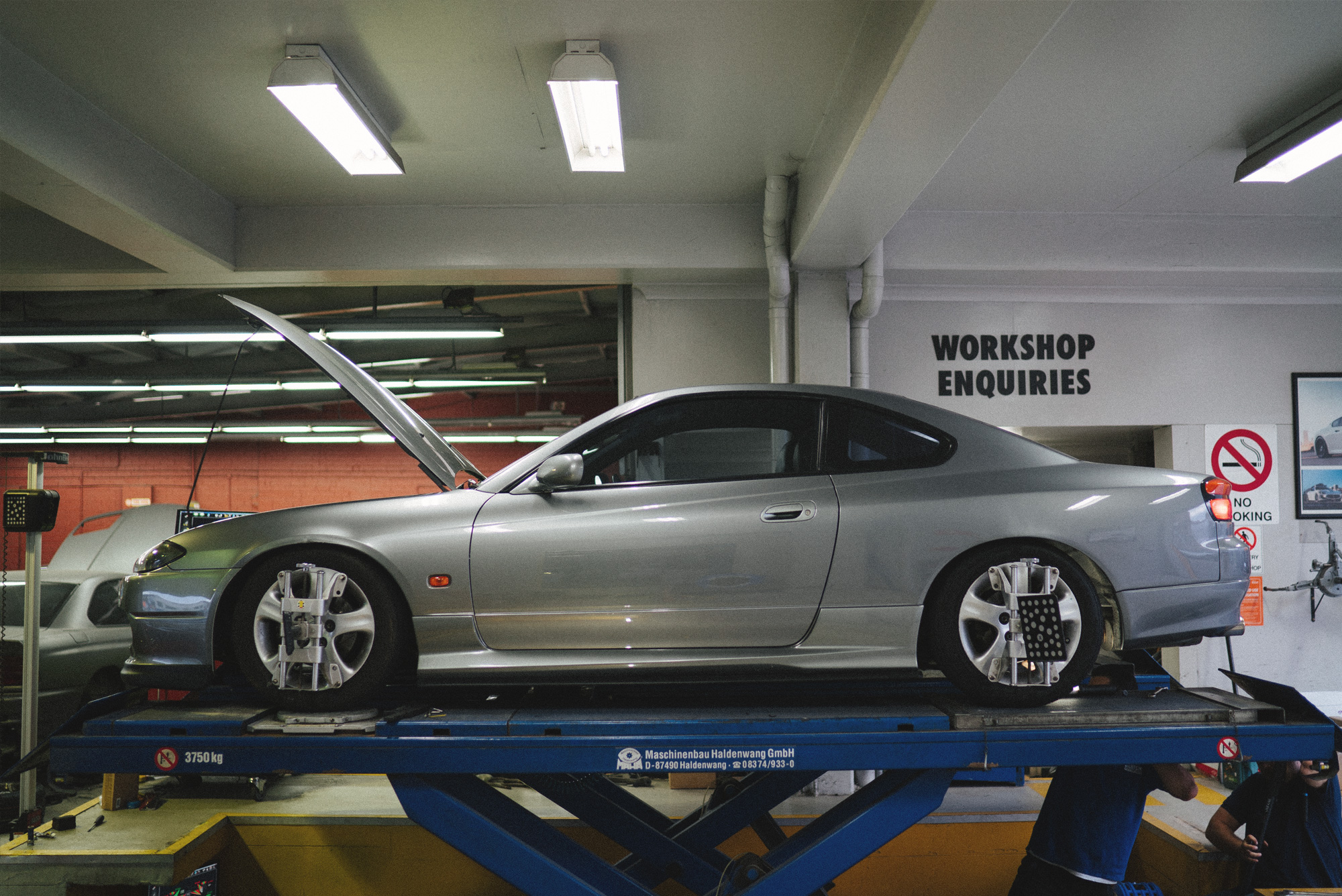 One of the first things we do when we buy a car, whether it’s brand new, or used, is drive it to Heasman Steering for a wheel alignment. The S15 is slammed too (it’s practically riding on bump stops), so for the first time ever, we’re getting the guys to raise the car rather than lower it!