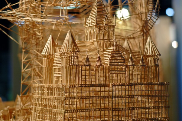 Scott Weaver is a mad man. It took him 35 years and 100,000 toothpicks to create this insanely complex kinetic sculpture titled ‘Rolling through the Bay’. The sculpture is comprised of multiple ‘tours’ that move pingpong balls through neighborhoods, historical locations, and iconic symbols of San Francisco (Source).