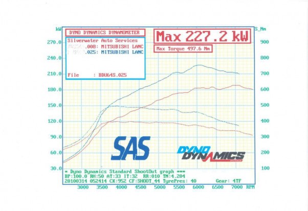 Andy05 bought the car from new, and has commented that the car was very strong from new. With a Ralliart filter, MR BOV and silicon intake pipe it pulled a very healthy 164kw atw on Indy’s dyno.
