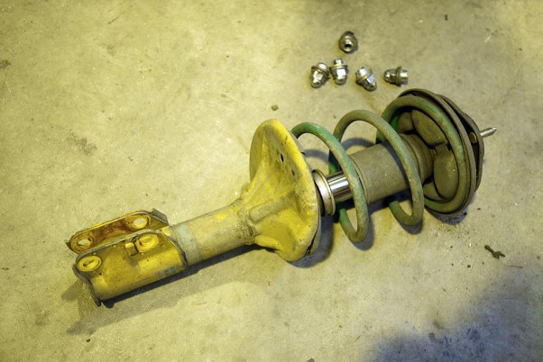 First owner upgraded this EVO with a performance pack which included Bilstein shocks. He installed some Tein S-Tech springs to lower the car, which blew the shocks so all of this had to come out.