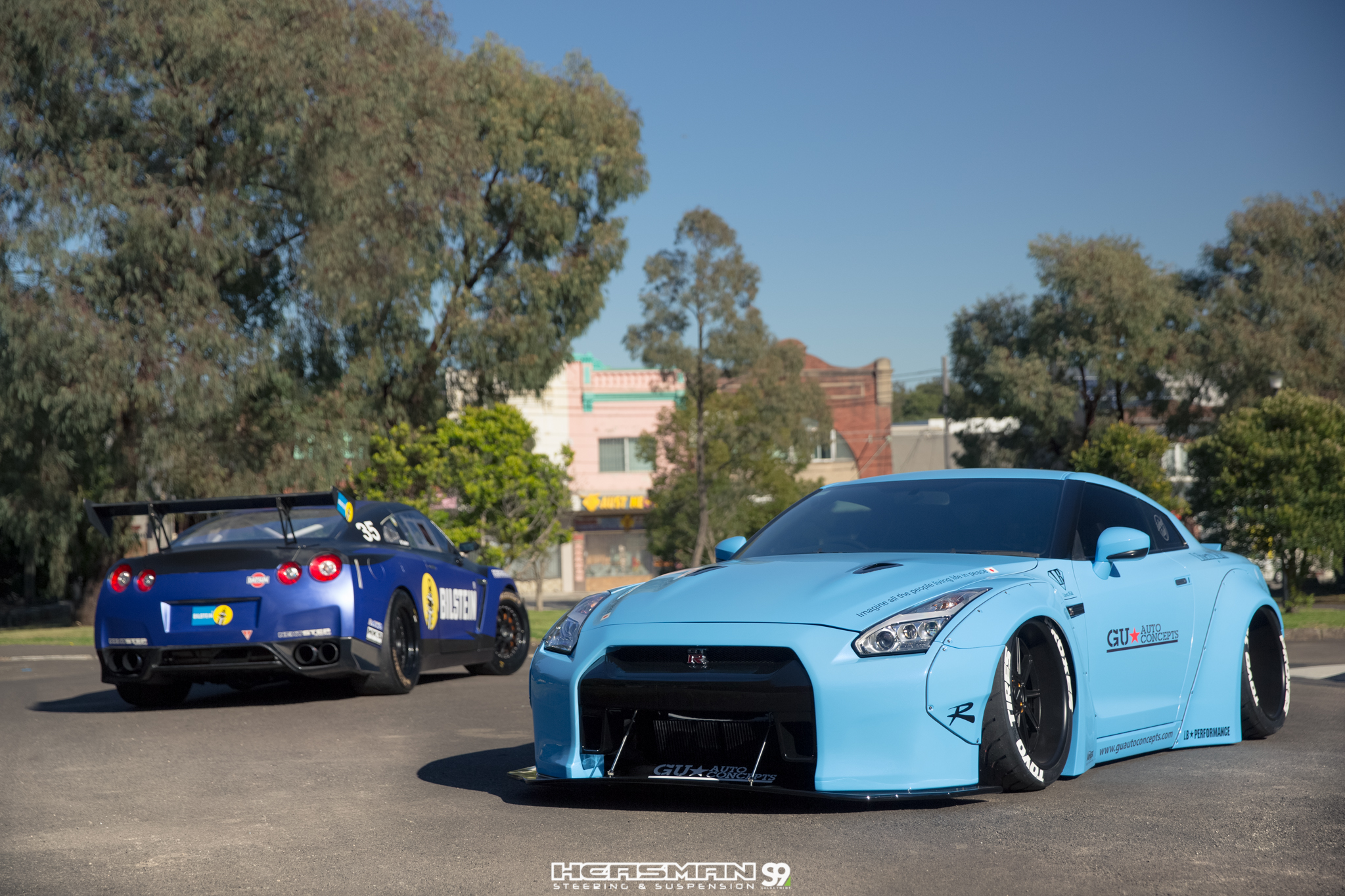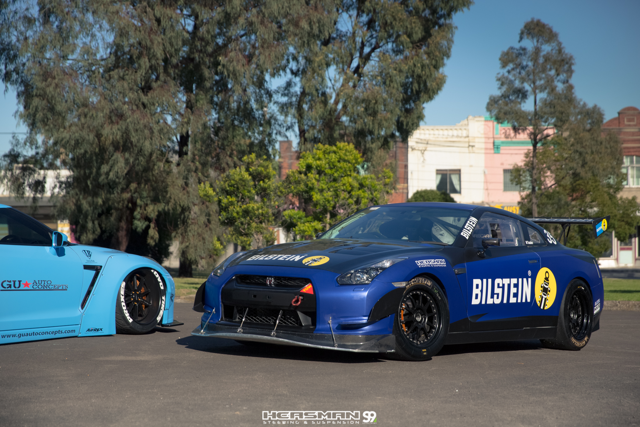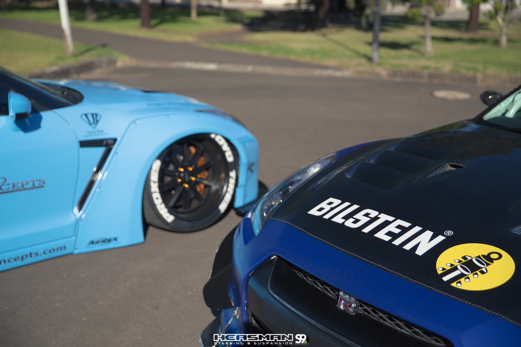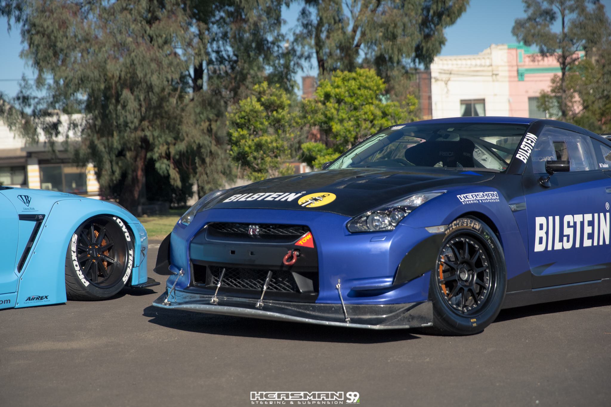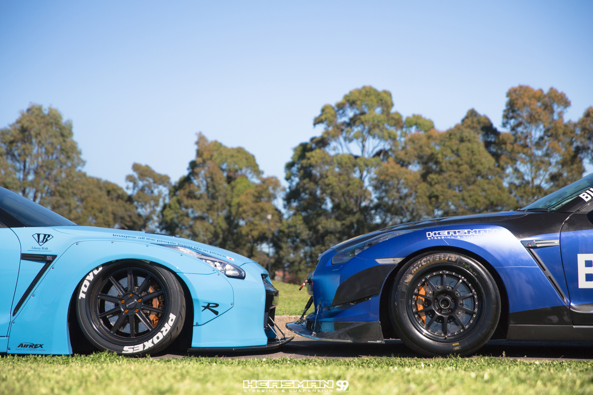 Two R35 GTR’s. One of them a 500kw, sequential gearbox equipped track weapon that’s been fitted with Bilstein MDS coil overs, bigger sway bars and a Heasmans track alignment (our “RB26” R32 GT-R also runs an aggressive track alignment from Heasmans). The other GTR is a Liberty Walk kitted show car on Airrex suspension.