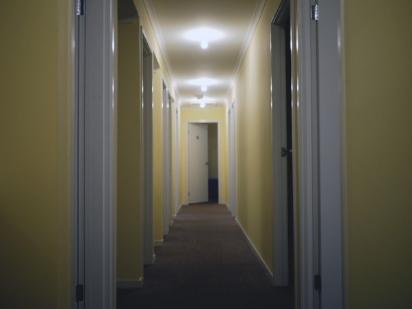 The cabins were once for the Olympians during the Sydney Olympics. Heaps of bedrooms, 3 single beds/room and showers, toilets and sinks line an entire side of the hallway. Totally functional!