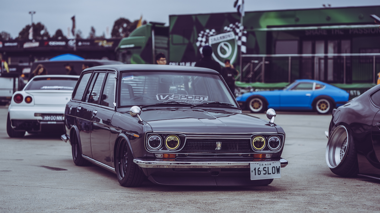 A bit of space began to open up in the show and shine area so I mosied across to really put my Zeiss Batis 85mm f/1.8 to work. This lens always stuns me with its vibrance, clarity and sharpness, and picked up all the beautiful details of the many loved cars parked up. Airbags & coilovers, dished wheels, loads of camber, custom headlights, candy speckled paint, the show and shine had it all.