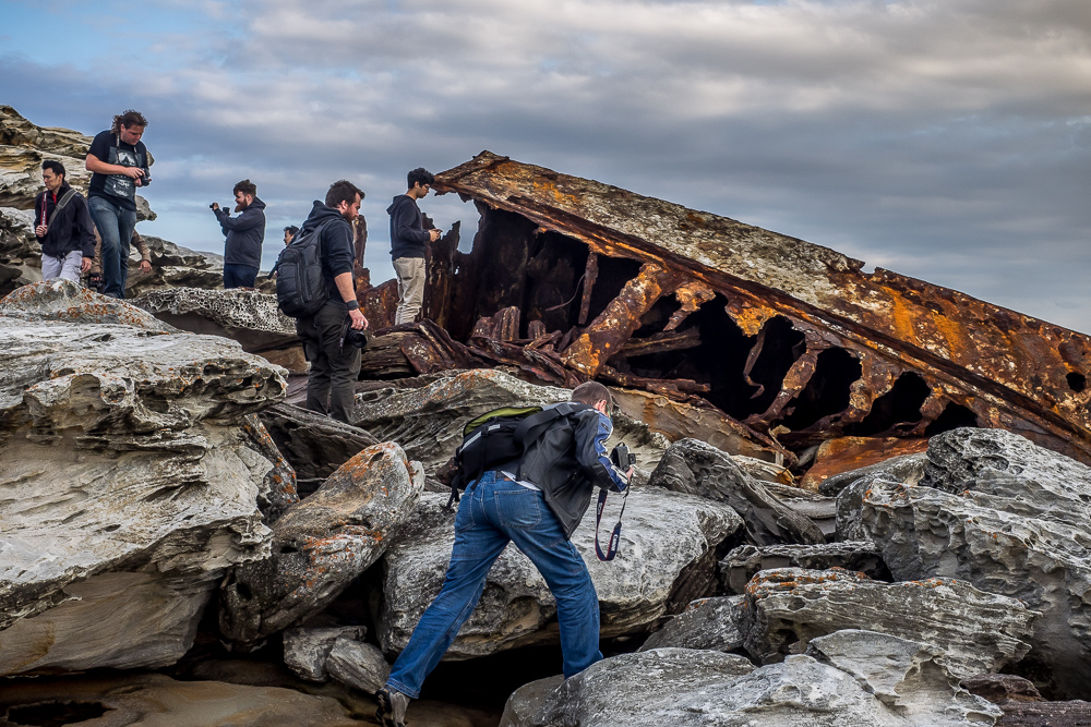 We met at 3PM at Cape Banks, Botany National Park in La Perouse and we walked from there to the shipwreck Minmi. Our luck saw the rain stay away and we hit the shipwreck right on low tide which let us board for a couple of shots. Some familiar faces from the past 2 Photowalks and many new faces too.