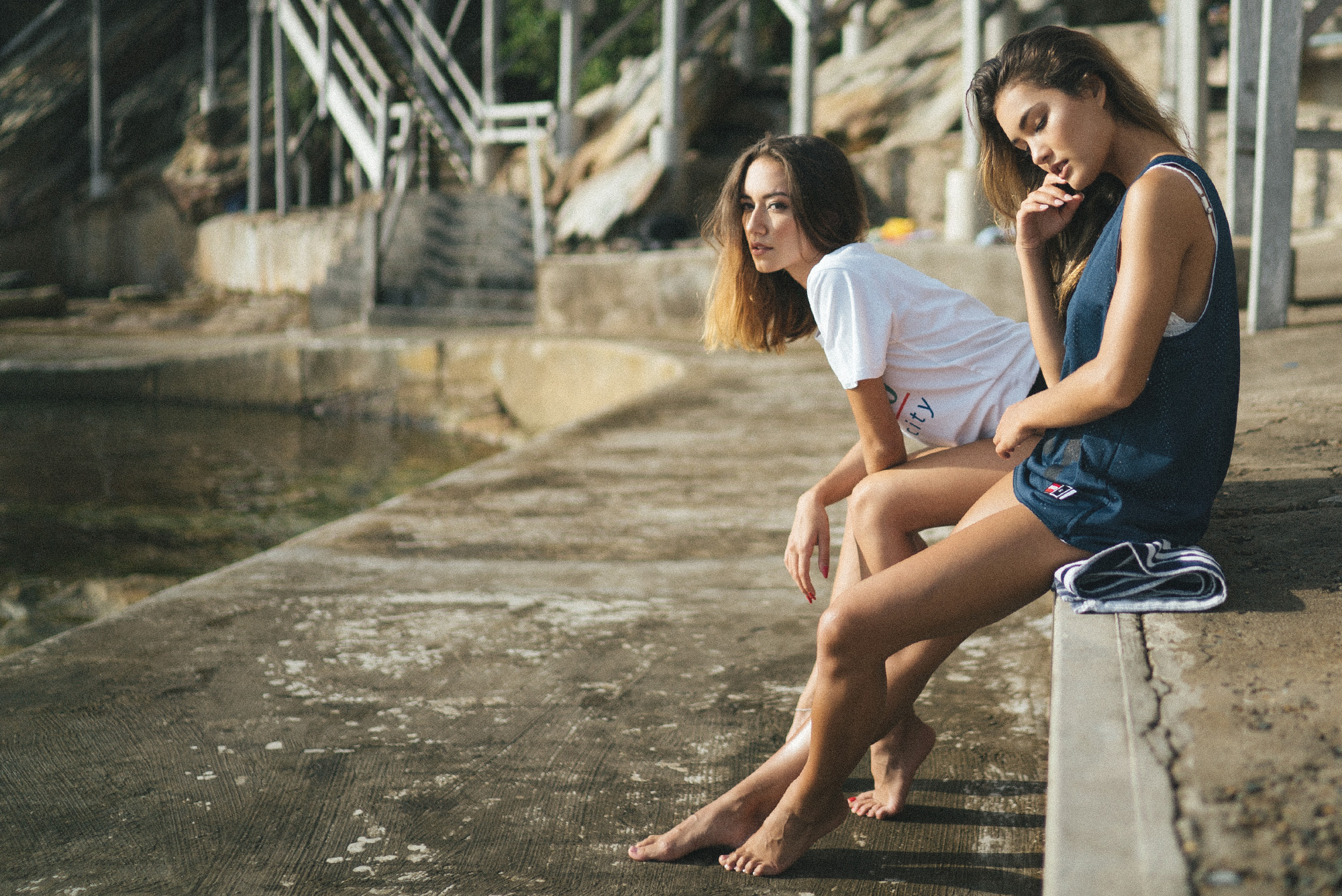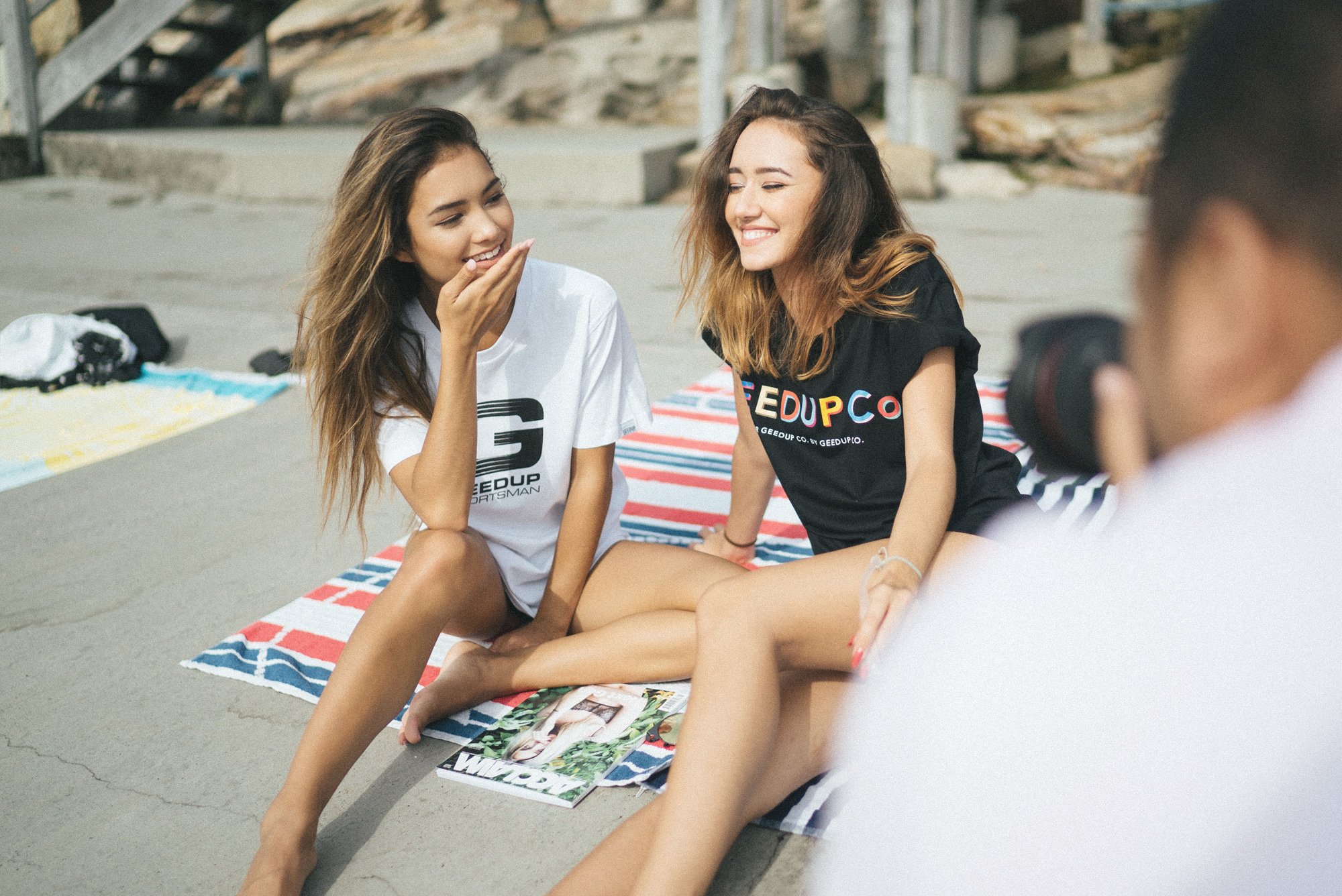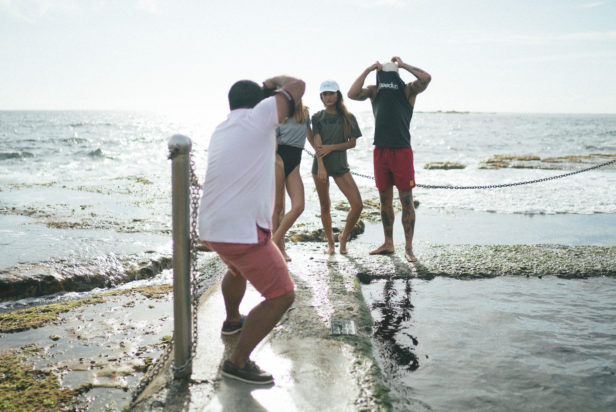 Beau from Geedup invited me to shoot some behind the scenes shots of Eurasian Hotties Mimi Perkins and Lea Niksic in Geedup gear this morning. Turns out the location was Wylie’s Bath’s down the road from my place, and the photographer was Brix, who I’ve been meaning to meet for some time (love his work and was super fun watching him work it!). There was quite the crew; LindaQ makeup, video guy was Adam from Redscope and Ben from Eurasian Hotties was there too.