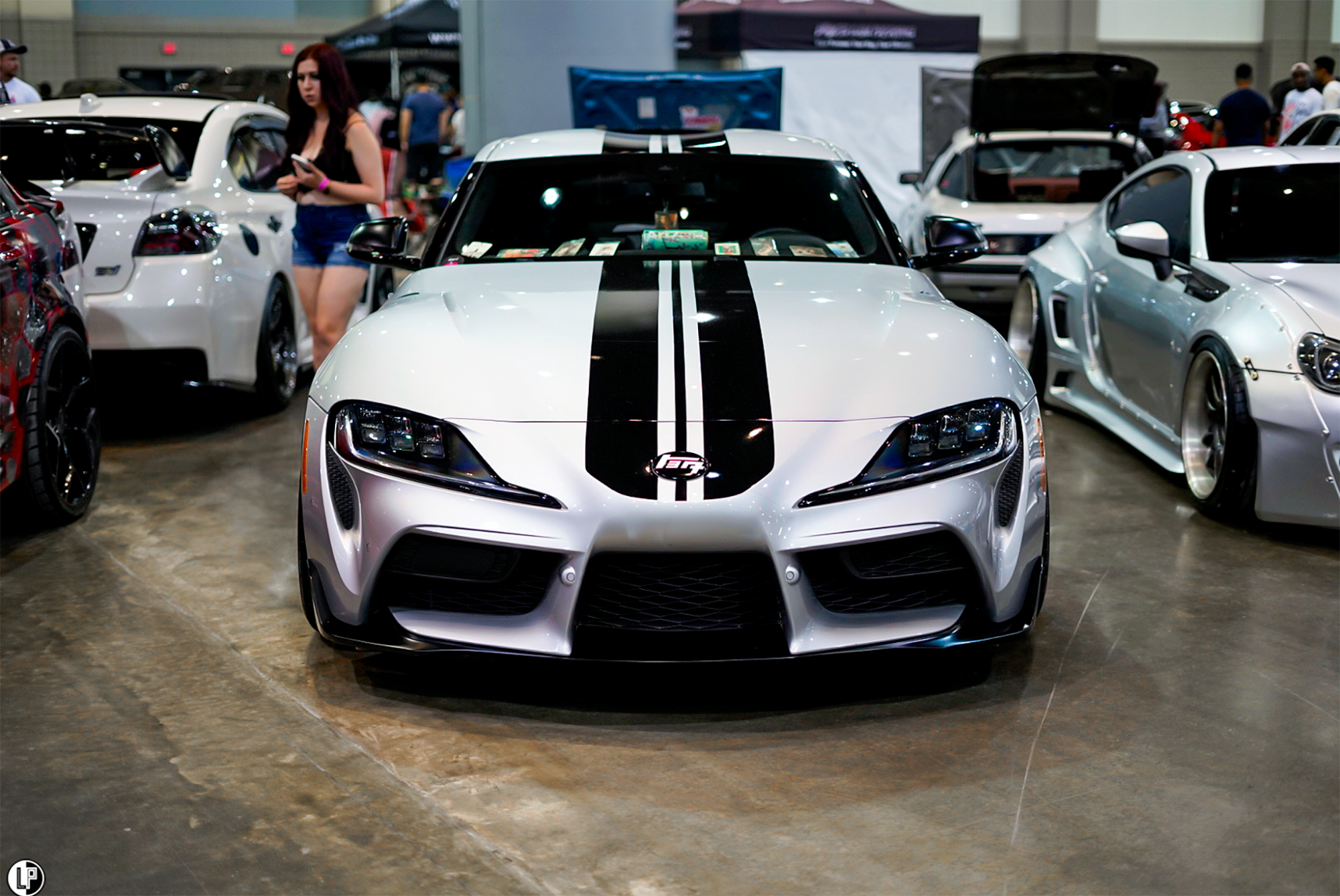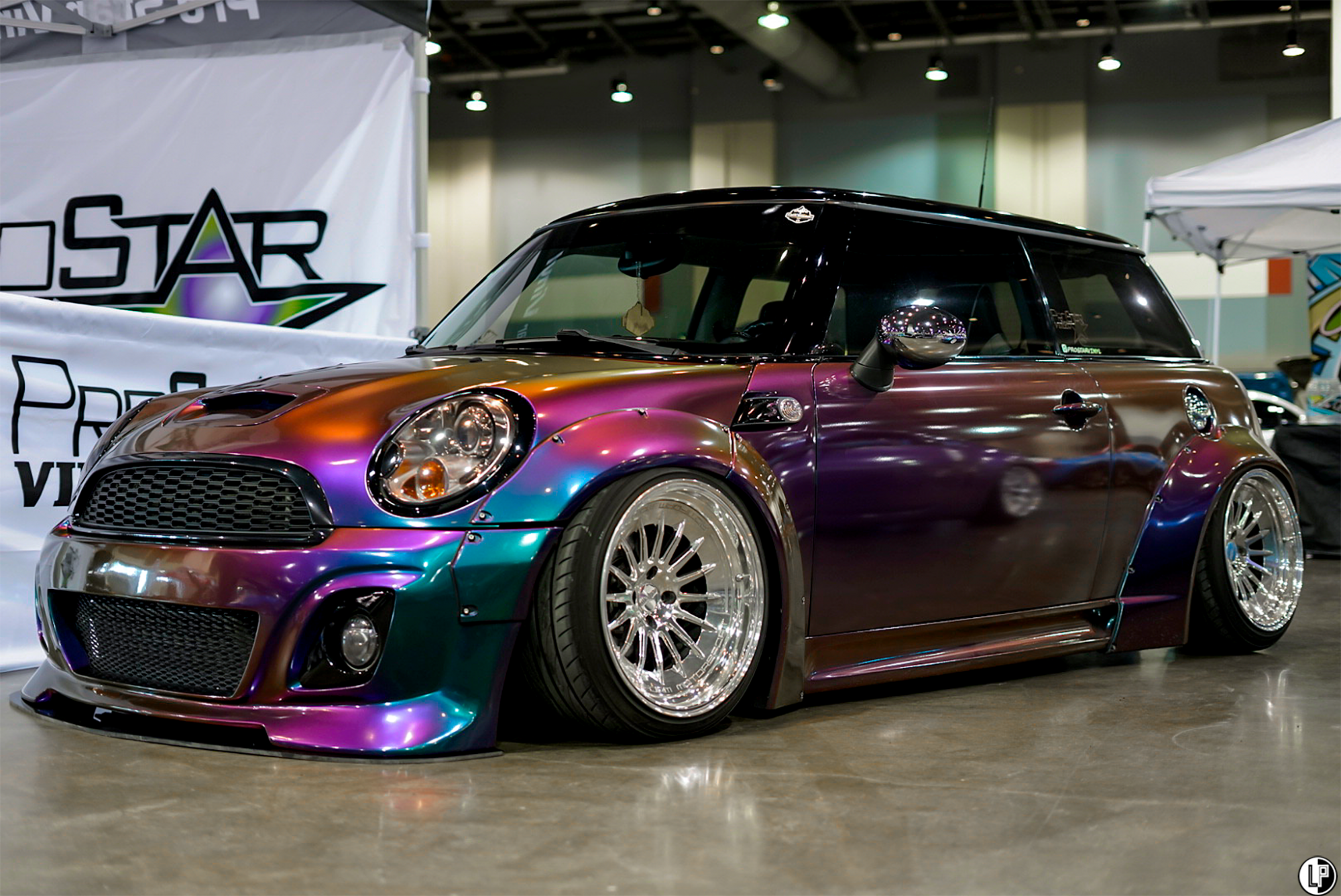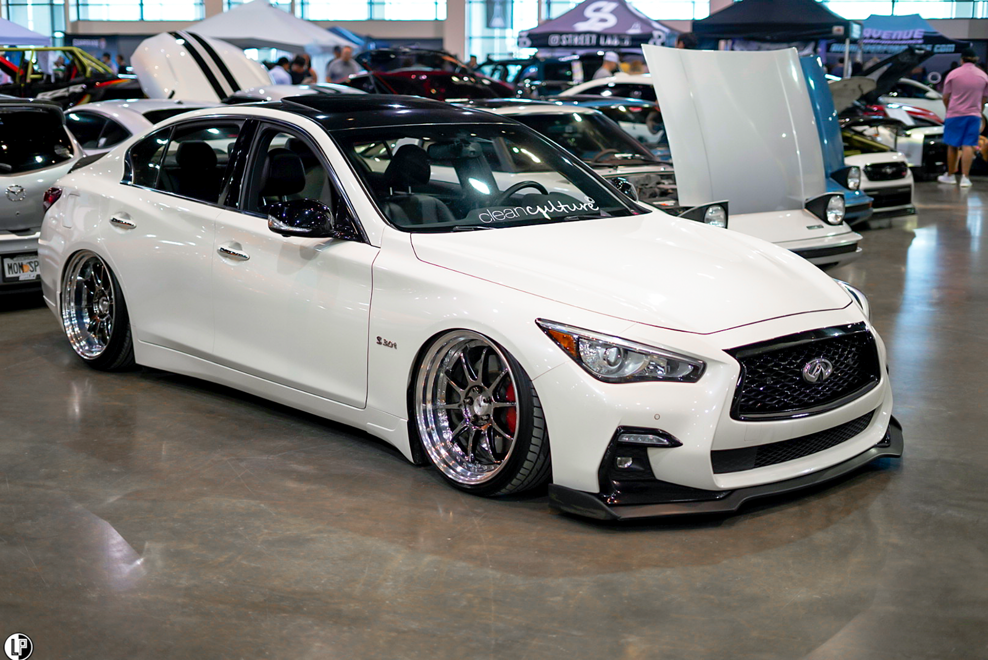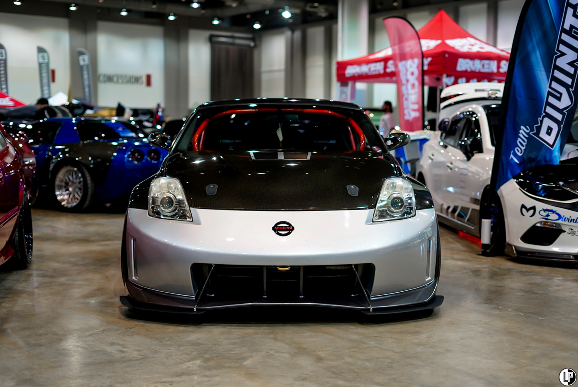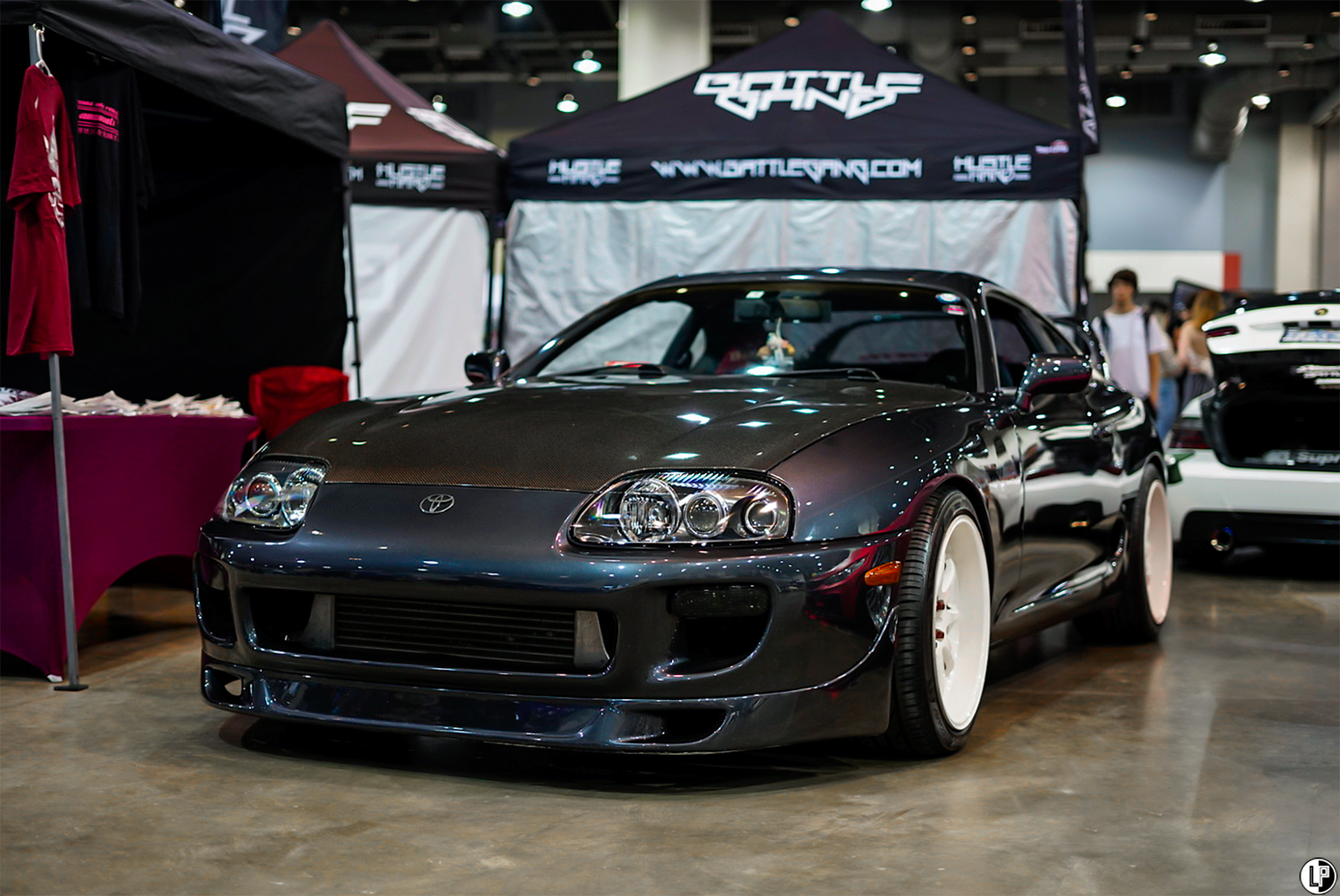 I must say, I was impressed with the array of interesting car builds at this show. Dustin Watson brought out his immaculate wide-bodied Lexus LS460 seen at the CarDrugs.com booth around the corner from the Klean Society booth. Another hot car that has been graciously sweeping eyes, is Hannah Mead’s Arizona Tea livery styled Hyundai Genesis coupe. Such a cool car.