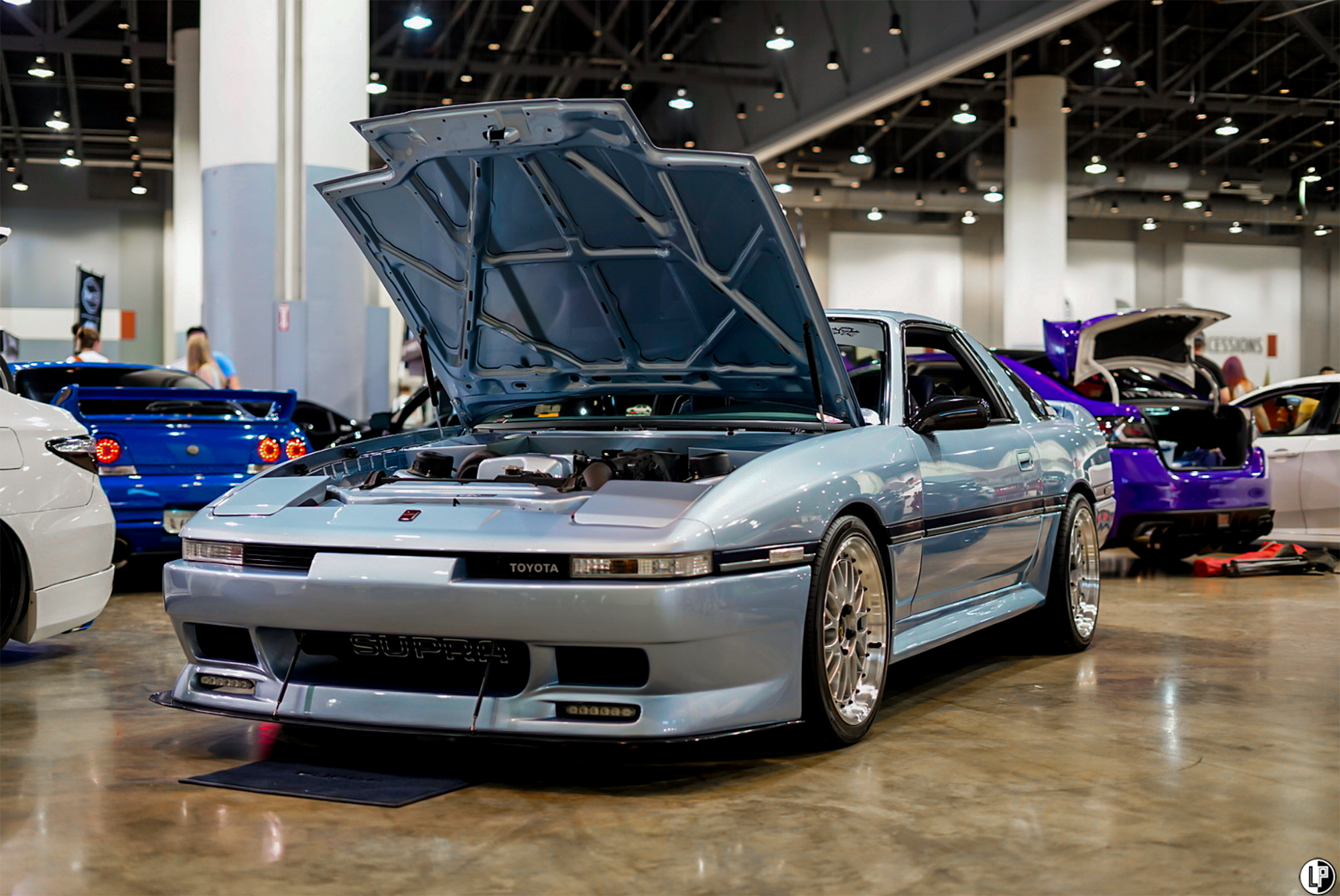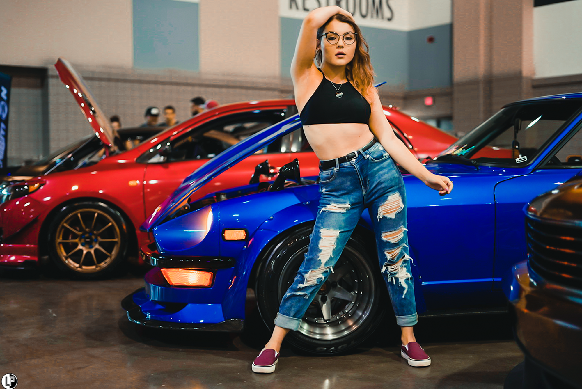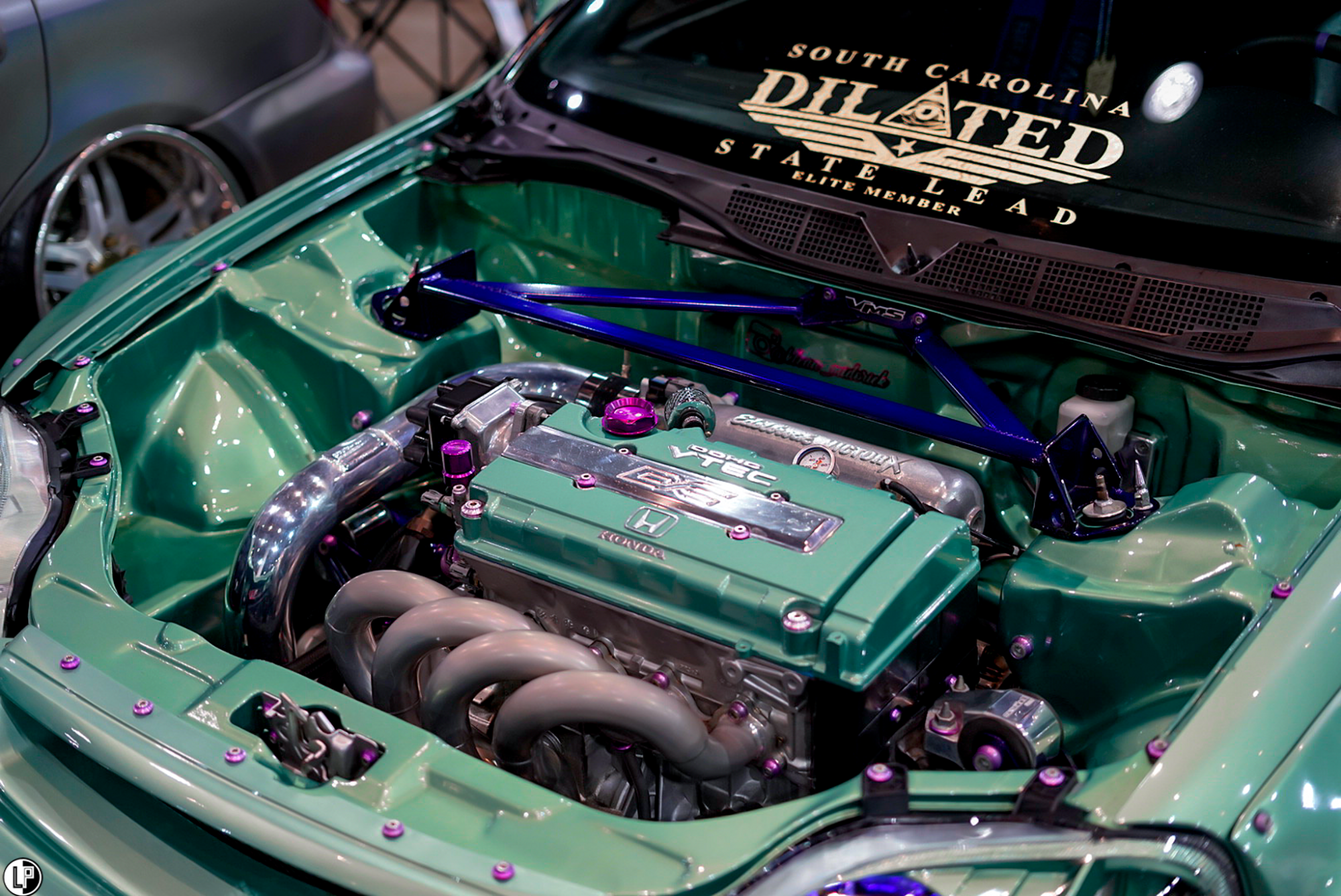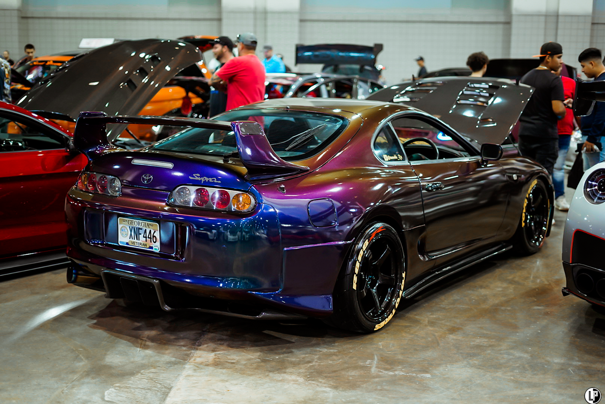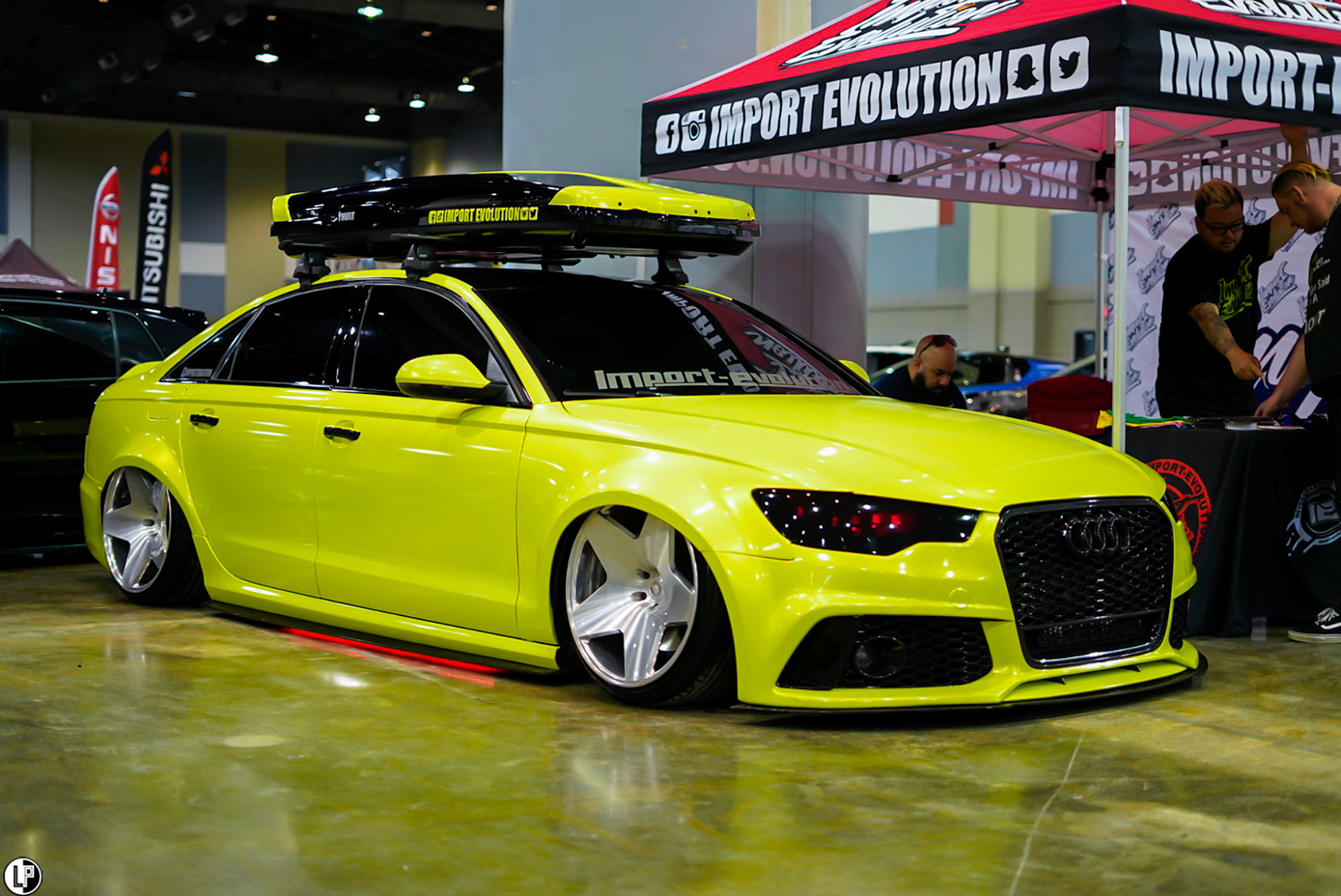 I must say, I was impressed with the array of interesting car builds at this show. Dustin Watson brought out his immaculate wide-bodied Lexus LS460 seen at the CarDrugs.com booth around the corner from the Klean Society booth. Another hot car that has been graciously sweeping eyes, is Hannah Mead’s Arizona Tea livery styled Hyundai Genesis coupe. Such a cool car.